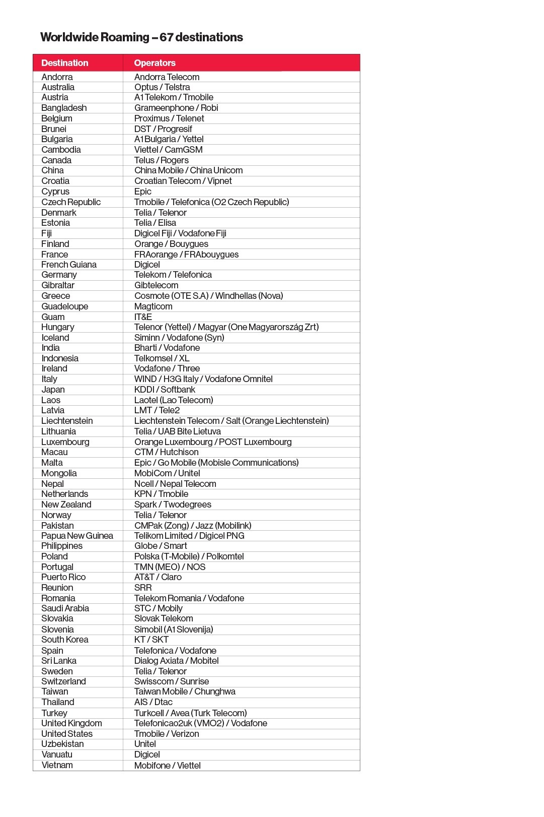 | Australia | Optus |